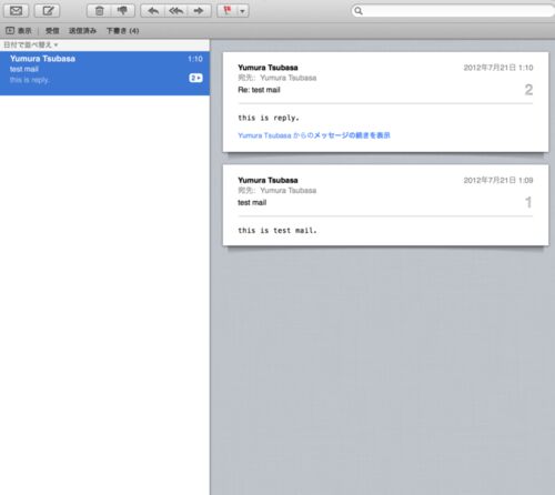 移行ツール使わずに、スクラッチから Mountain Lion のセットアップしてる。 メール自体は IMAP なので移行必要ないし、Mail.app の設定も大抵そんなに大変じゃないからまた設定し直したのだけれど、振り分けルールだけはもう一度作りなおすのが面倒なので、…