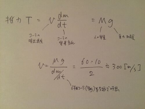 Facebookでこんな動画を見つけました。 投稿 by Gadoo. これはさすがにない(合成かトリック)だろうと直感で思ったけど、いまいち確信が持てないのでざっくり計算してみました。 人が飛ぶ(コーラの噴出による推力が、人にかかる重力よりも大きくなる)ために…